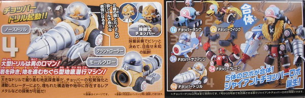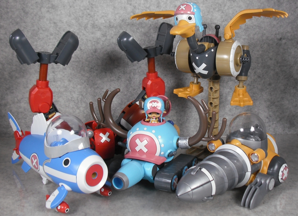 Hai nhân vật Chopper đi kèm với hai pose đứng và ngồi. Các phụ kiện như đầu và cuốc chim có thể trao đổi với nhau.