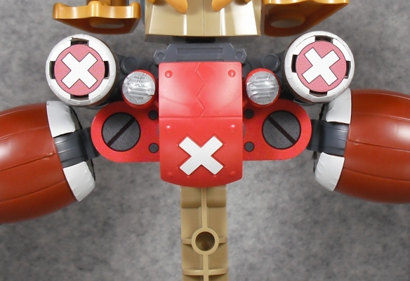 Chopper Robo có form người đô hơn ở phần thân trên, sự phân bố màu sắc ở mặt trước và mặt sau đồng đều, không tạo cảm giác rẻ tiền.