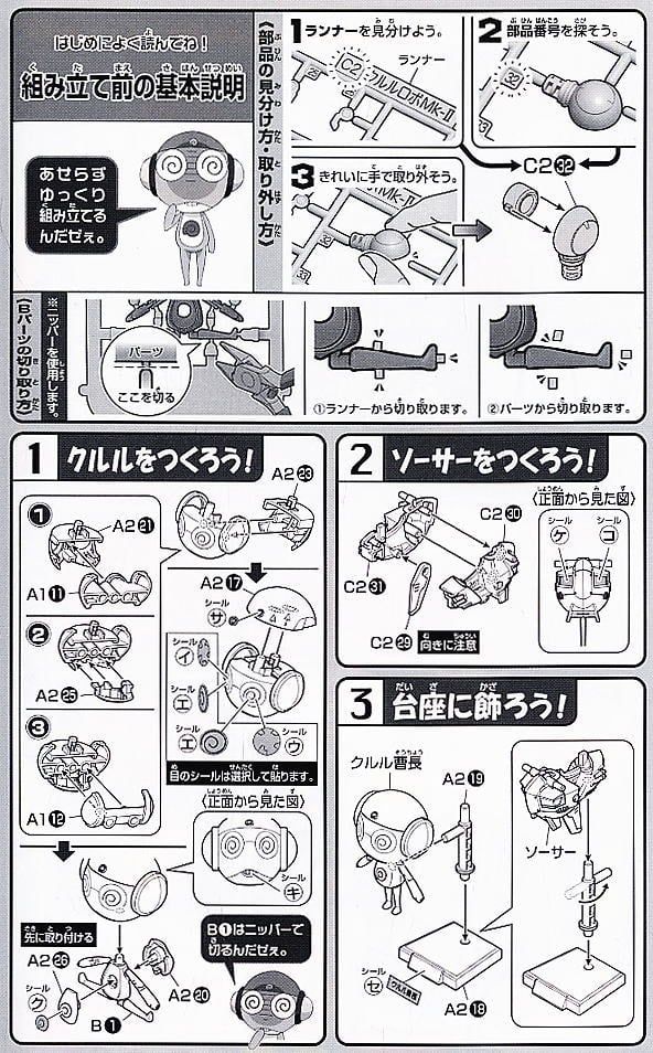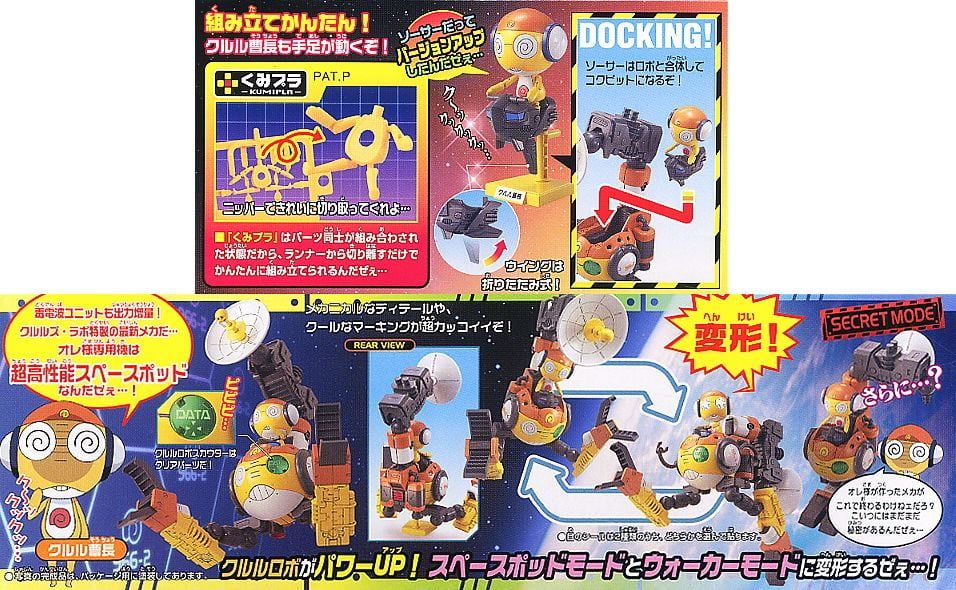 • Kururu Thượng Sĩ có thể ngồi trên đĩa bay (saucer) đi kèm, và đĩa bay có thể kết hợp với Robo Mk-II để trở thành buồng lái (cockpit).