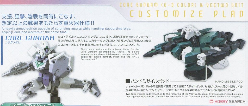 Từ "Gundam Build Divers Re:RISE", hân hạnh giới thiệu bộ Core Gundam (G3 Color) & Veetwo Unit! Bộ kit này mang đến một tính năng mới: hệ thống core docking.