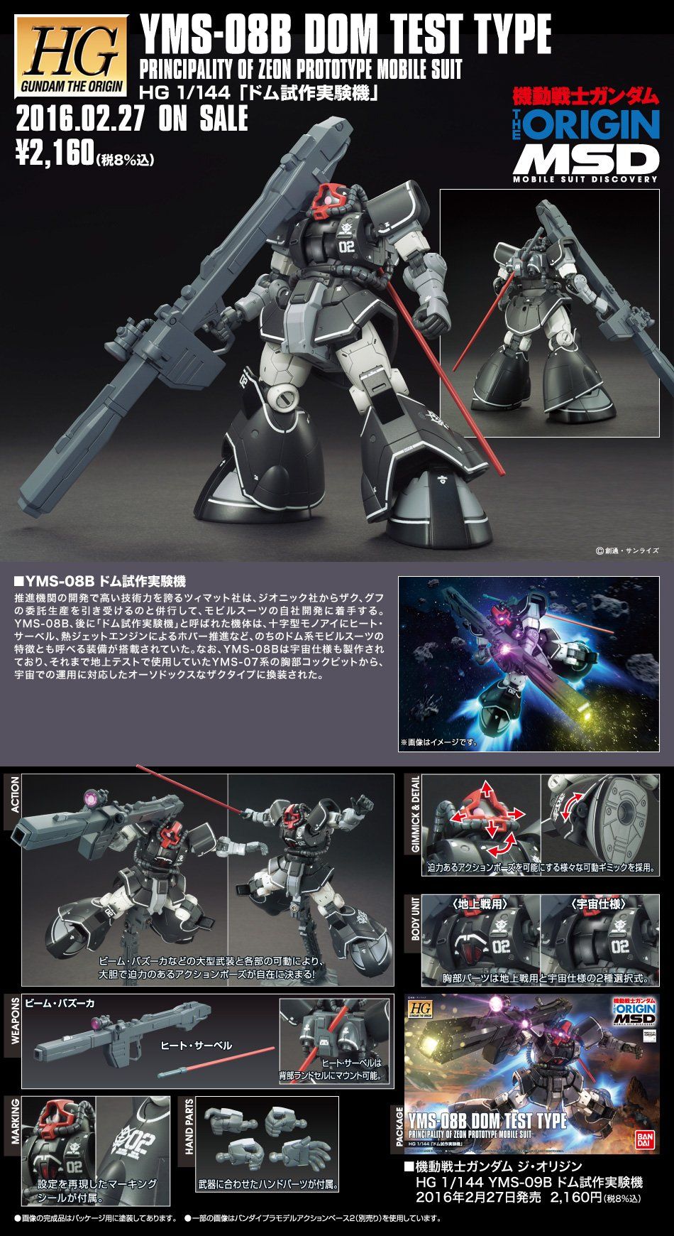 Là mẫu thứ hai của loạt dự án nghiên cứu cơ khí "Mobile Suit Discovery" cho "Mobile Suit Gundam THE ORIGIN", "Dom Prototype Test Type" giải thích con đường phát triển của Dom, nay đã được làm thành một mô hình trong thế giới 3D!