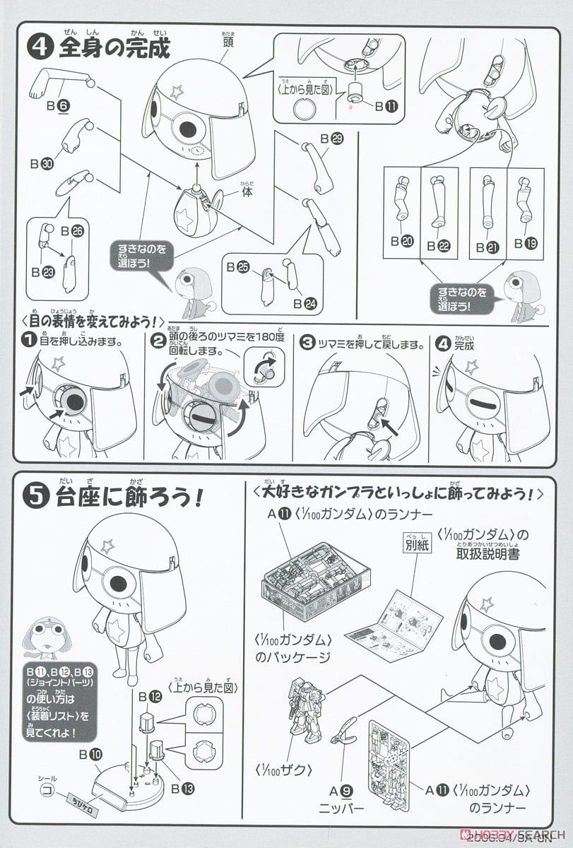 Đi kèm nhiều phụ kiện Gunpla mà Keroro yêu thích, bao gồm: hộp mô hình “1/100 Gundam” tỉ lệ 1/6, runner của 1/100 Gundam tỉ lệ 1/6, mô hình 1/100 Zaku tỉ lệ 1/6, kềm cắt (nipper) và nhiều chi tiết nhỏ khác.