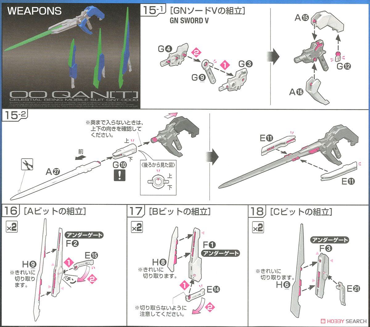 GN SWORD BIT có thể tách ra khỏi khiên và kết hợp lên GN SWORD V thành một thanh đao bự.