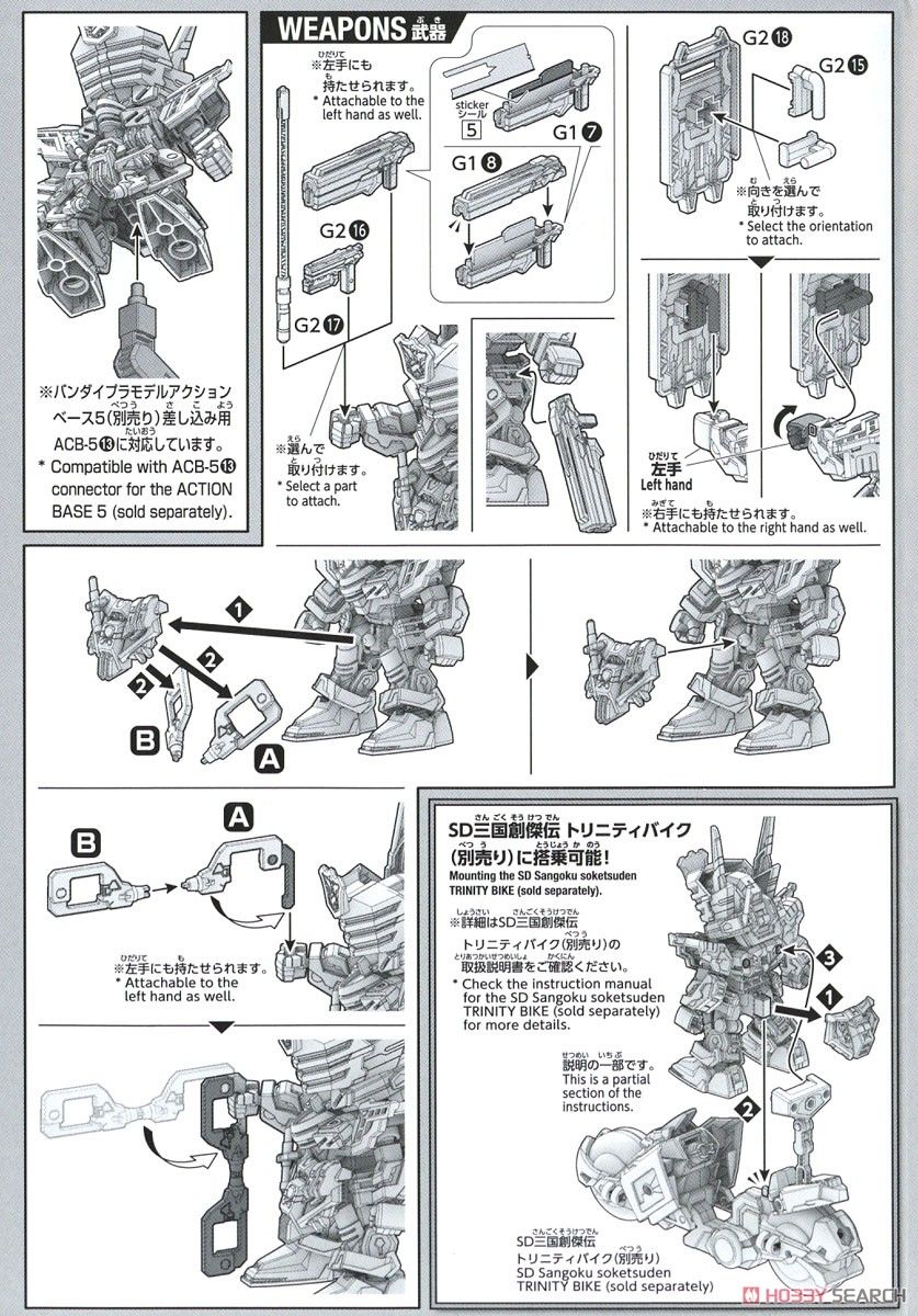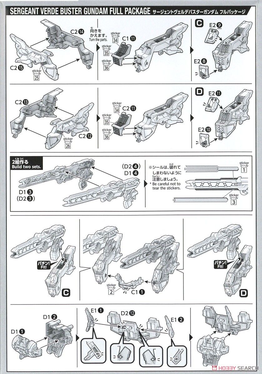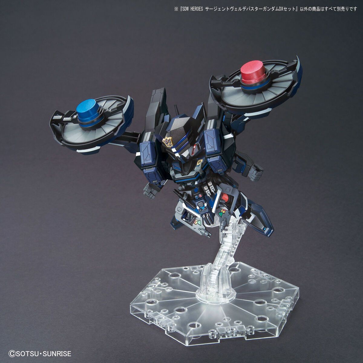 Ngoài những món vũ khí hạng nặng để trang bị trên người Sergeant Gundam, bộ mô hình còn kèm theo cả set phụ kiện vũ khí cho SD Verde Buster Team Member: Bộ backpack trực thăng, đôi giày trượt, gậy baton, còng tay, súng lục và khiên.