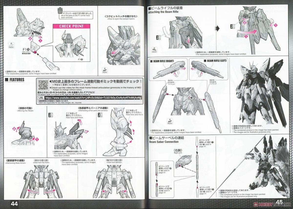 - Kit kèm với nhiều gimmick phụ kiện, như [Beam rifle], [Linear Gun], [Beam Saber], v.v.
