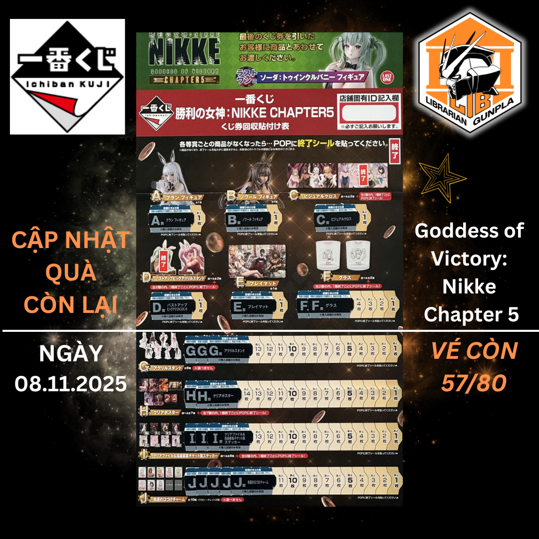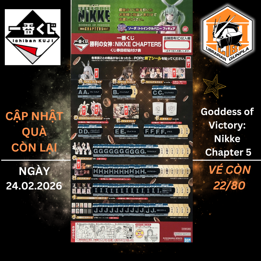 Ichiban Kuji - Goddess of Victory: Nikke – Chapter 5 là một bộ sưu tập độc quyền hợp tác giữa tựa game Goddess of Victory: Nikke và sổ xố Ichiban Kuji, mang đến cho bạn cơ hội sở hữu những sản phẩm tuyệt vời từ các Nikke Mỗi sản phẩm trong bộ sưu tập này đều được thiết kế tỉ mỉ, thể hiện rõ nét cá tính và phong cách của từng nhân vật. Đặc biệt, các hình vẽ và figure đều có những chi tiết độc đáo, giúp bạn cảm nhận được sự sống động và tinh tế của từng nhân vật.