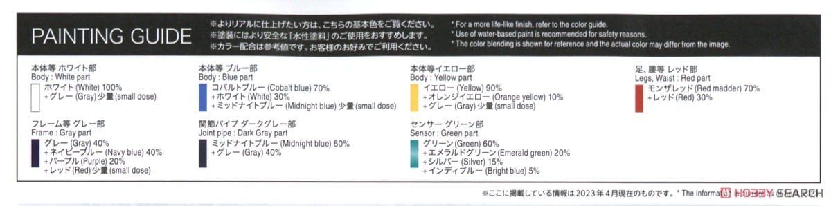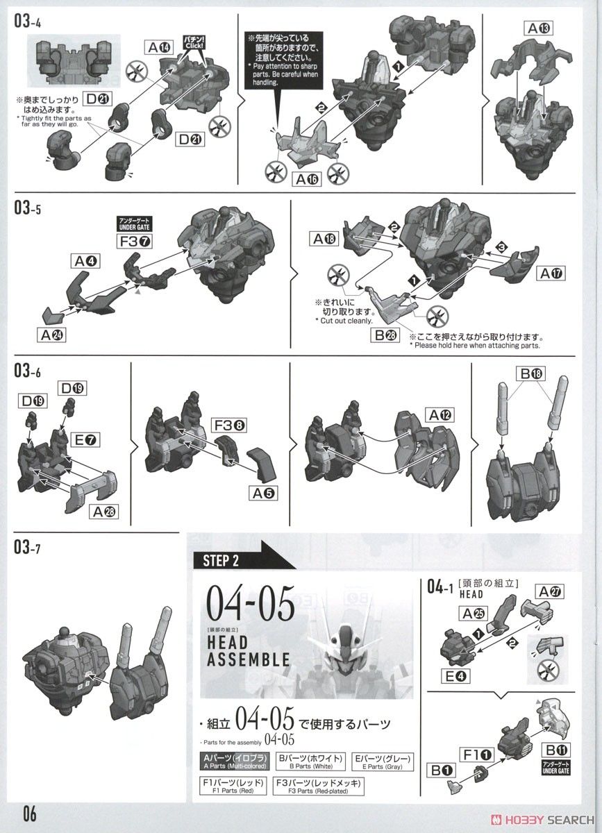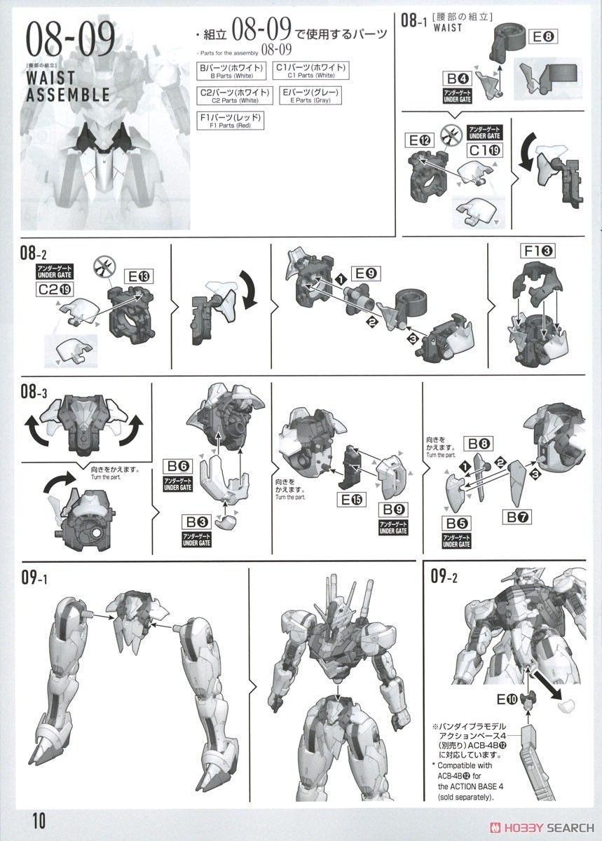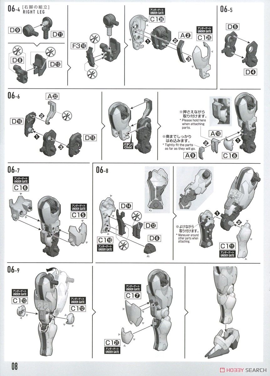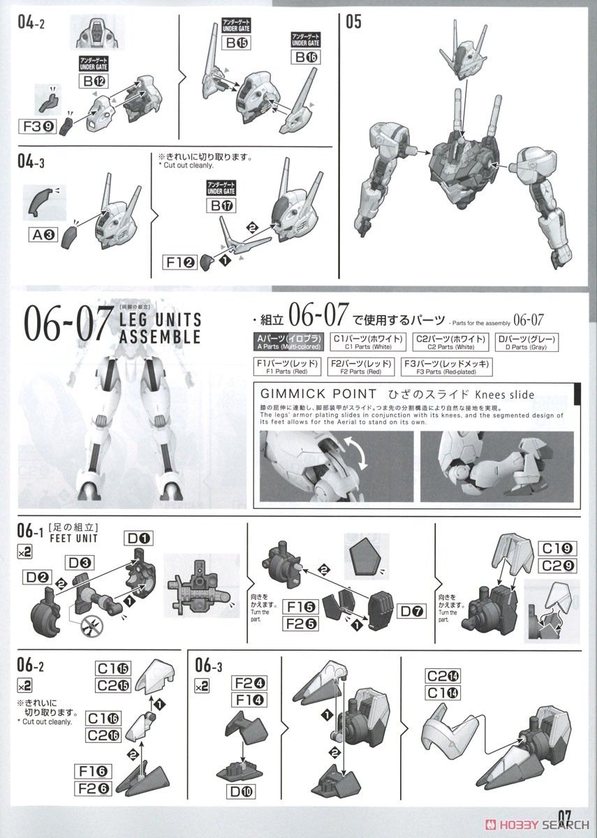 Phần chân có gimmick trượt. Giáp đầu gối và đùi dịch chuyển tương ứng với cử động của đầu gối. Ngón chân được tách chi tiết, để tái tạo lại độ tiếp xúc mặt đất cao.
