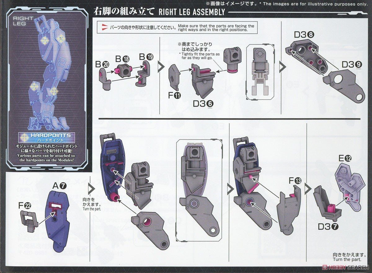 Xung quanh khắp cơ thể được trang bị các lỗ tiêu chuẩn 3mm, cho phép người chơi tha hồ độ và custom nhiều loại giáp và các vũ khí khác nhau từ các dòng 30MM và HG 1/144 của Bandai.