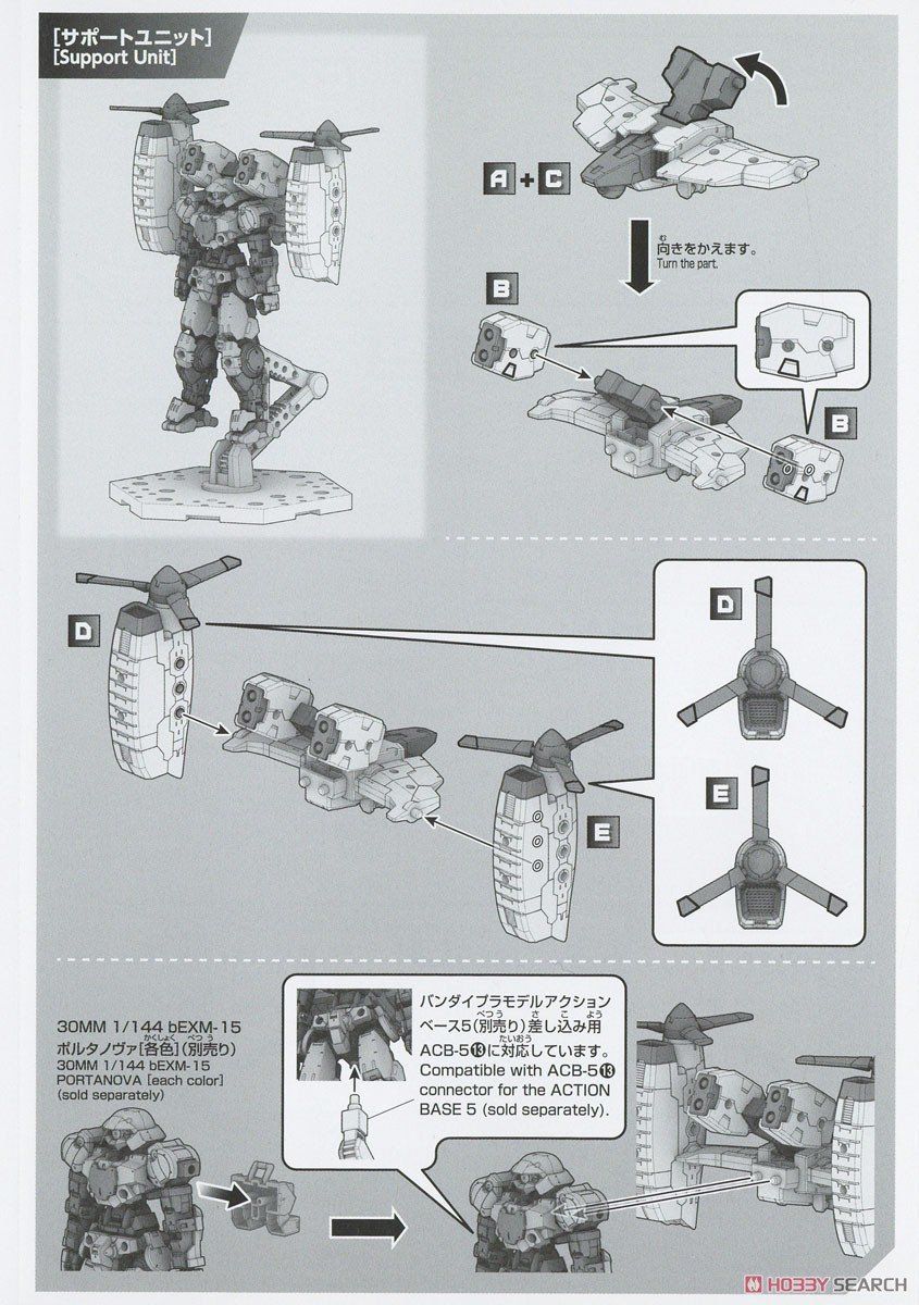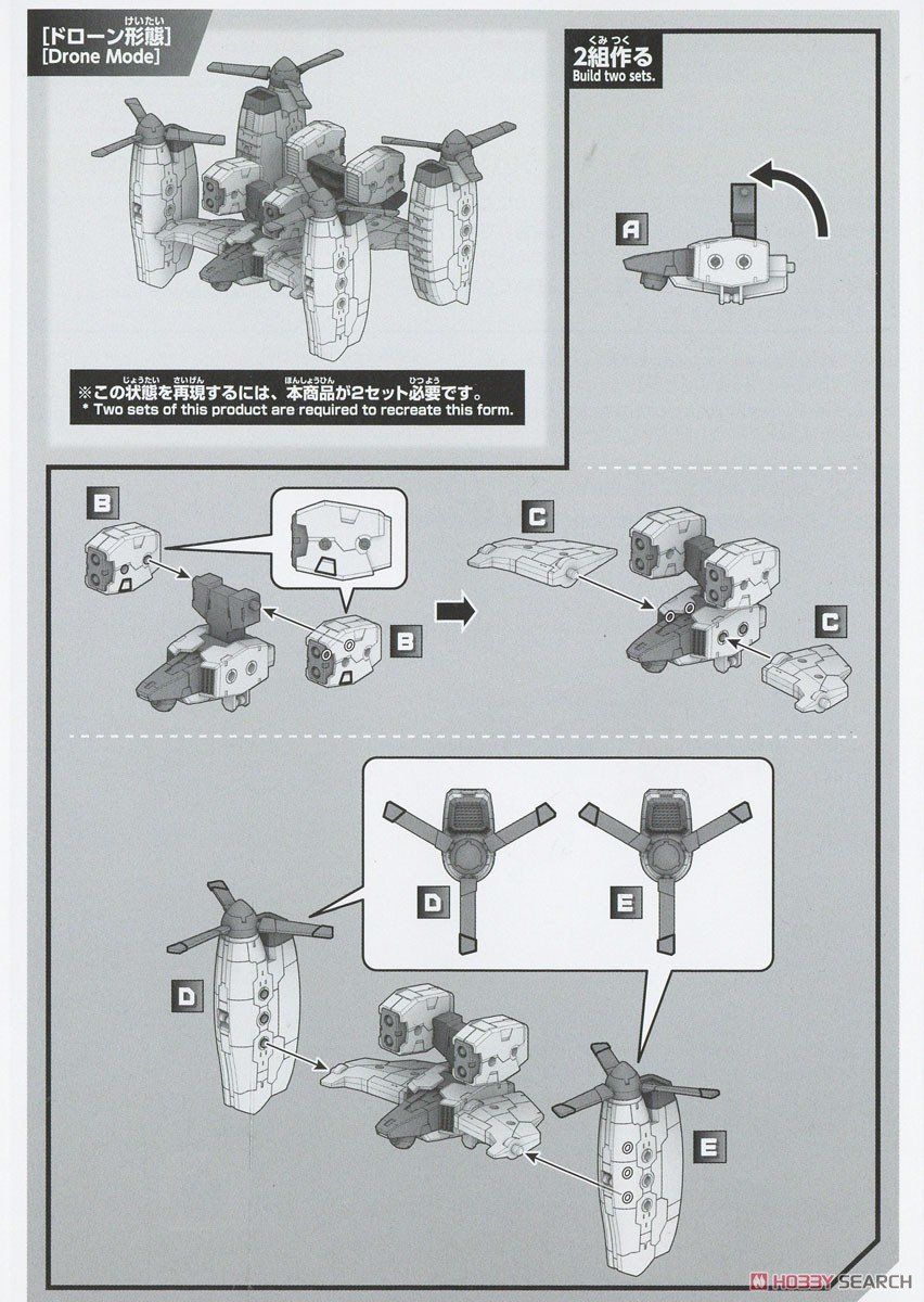 Ngoài form cơ bản dạng máy bay, người chơi có thể sử dụng phụ kiện từ mẫu này để kết hợp custom các mô hình 30MM / Gundam khác, tạo thành form "flight mode"