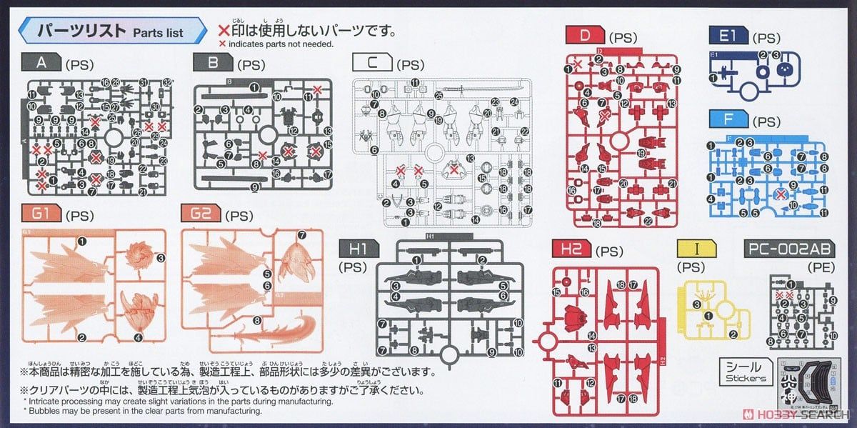 Các part trong suốt được đúc từ loại nhựa đặc biệt polarized resin, chúng có thể ánh lên các loại màu khác nhau khi được chiếu đèn vào hoặc khi được người chơi ngắm từ nhiều hướng.