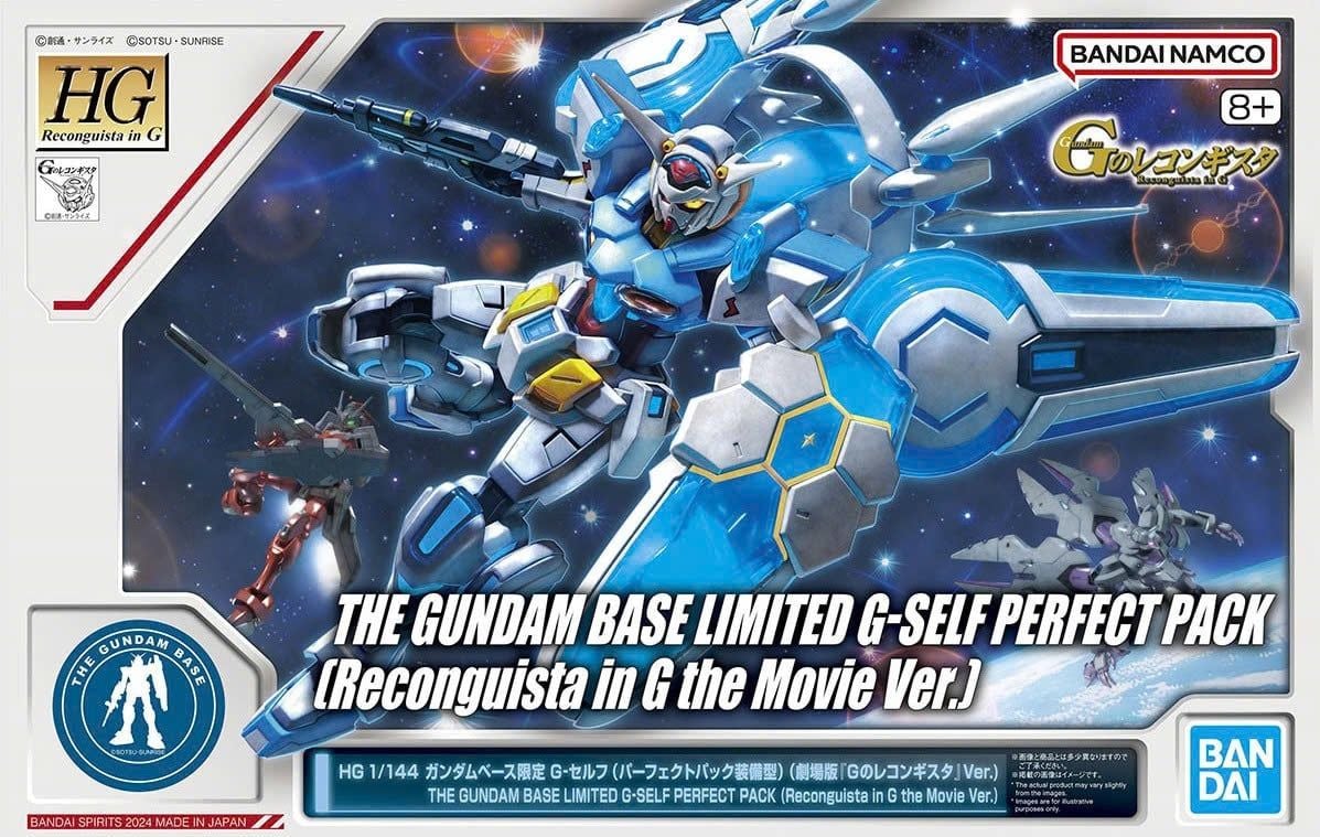 Nhân dịp kỷ niệm 10 năm phát hành series “Mobile Suit Gundam: Reconguista In G”, người hâm mộ sẽ được đón nhận phiên bản HG 1/144 mới của G-self Perfect Pack đến từ Gundam Base. Được phát hành từ ngày 26 tháng 10 năm 2024 với tên gọi mới là HG 1/144 The Gundam Base Limited G-Self Perfect Pack - Reconguista in G the Movie Ver, sản phẩm kit độc quyền này cho phép người chơi tái hiện lại trận chiến cuối cùng đầy cảm xúc trong phim, với G-Self được trang bị bộ Perfect Pack hùng mạnh.