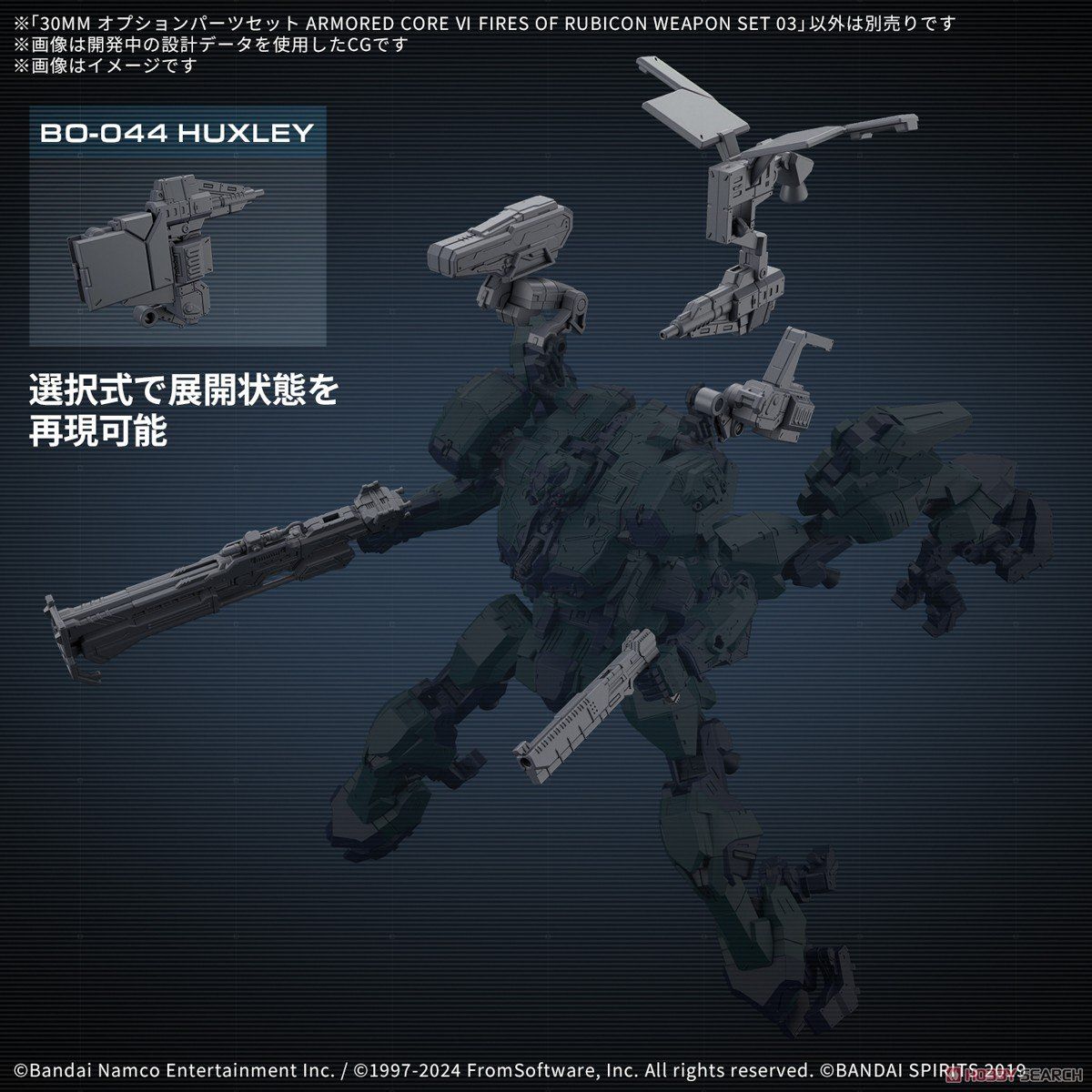 Các vũ khí bao gồm "HG-003 COQUILLETT," "SG-027 ZIMMERMAN," "BO-044 HUXLEY," và "BML-G3/P04ACT-01."