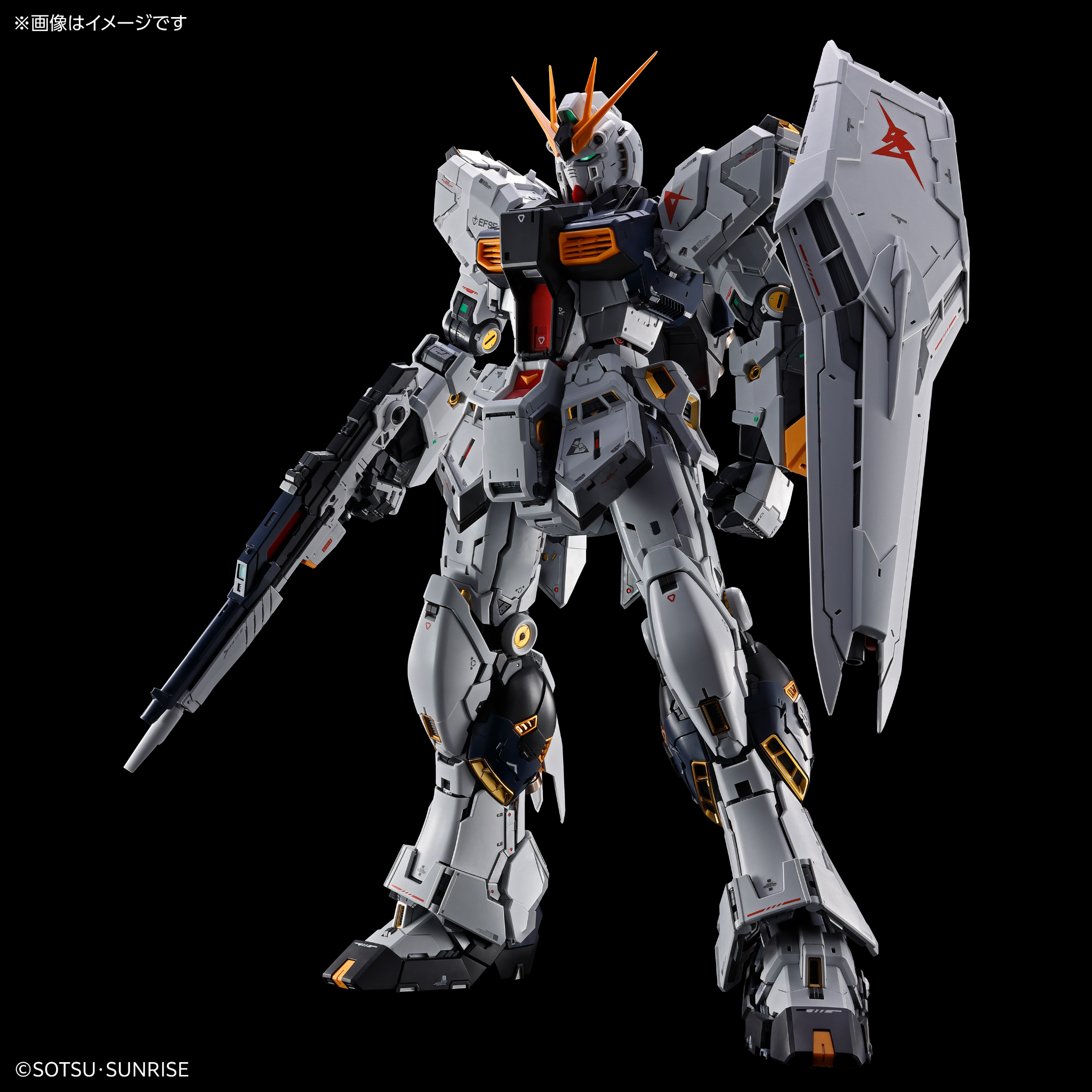 - Mô hình 1/60 đầu tiên của ν Gundam với cấu trúc nội khung được tái hiện cực kỳ chi tiết.
