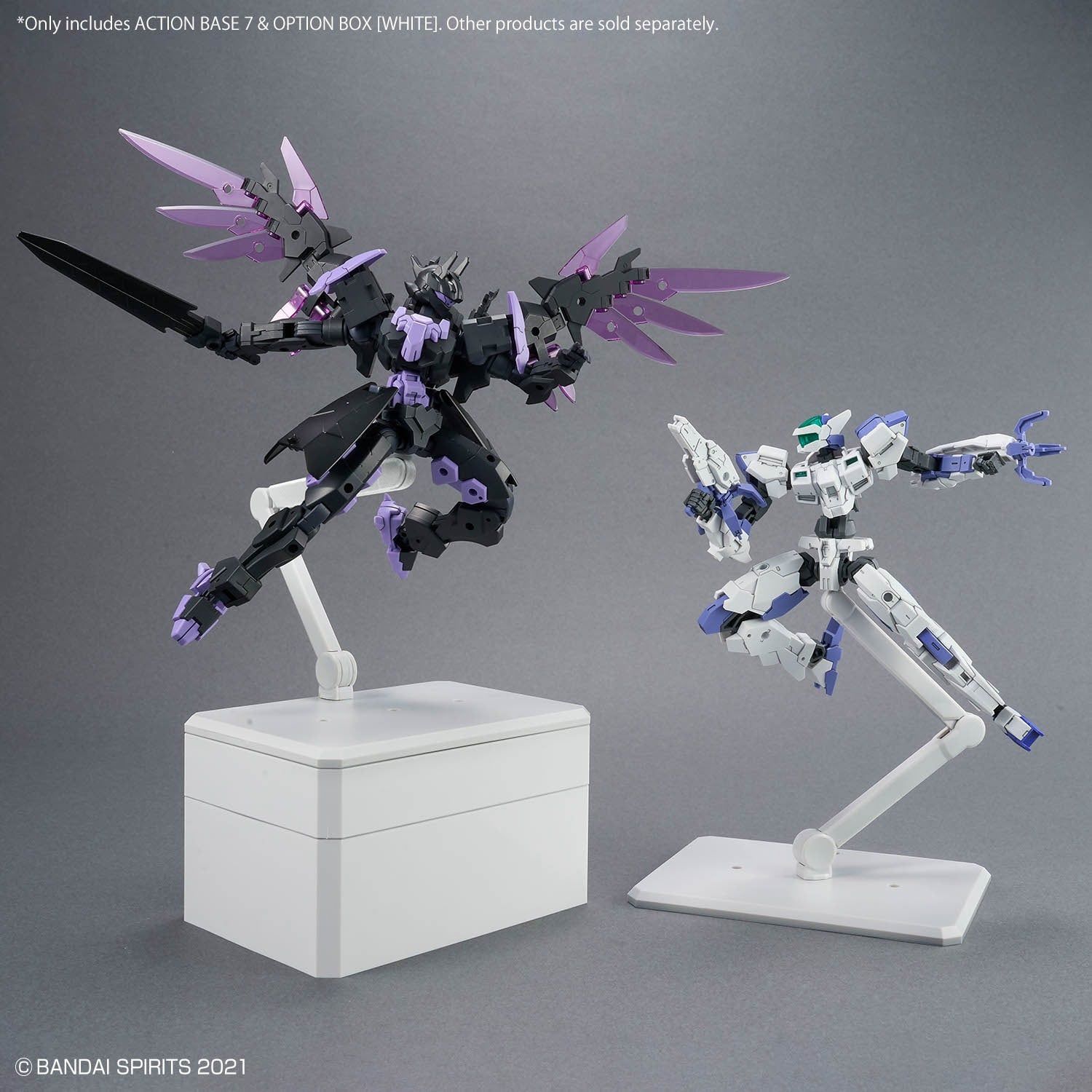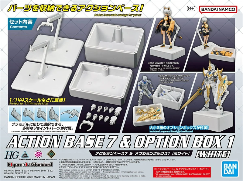 Action Base 7 & Option Box 1 - White là bộ đế trưng bày mecha của Bandai, kết hợp Action Base 7 và 02 hộp Option Box tiện lợi để cất phụ kiện/parts thừa sau khi lắp kit.