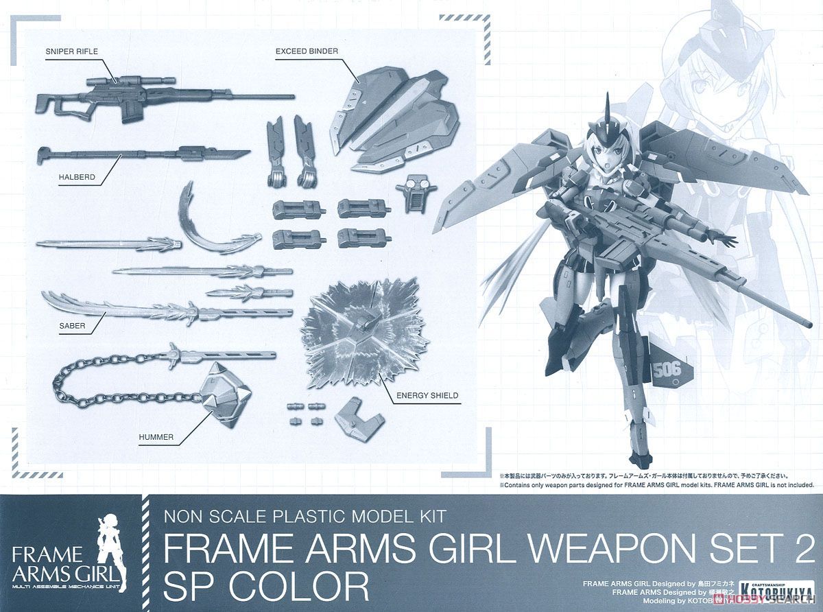 Frame Arms Girl Weapon Set 2 - SP Color là bộ vũ khí mở rộng dành riêng cho dòng Frame Arms Girl, với màu sắc đặc biệt nổi bật hơn so với phiên bản tiêu chuẩn.