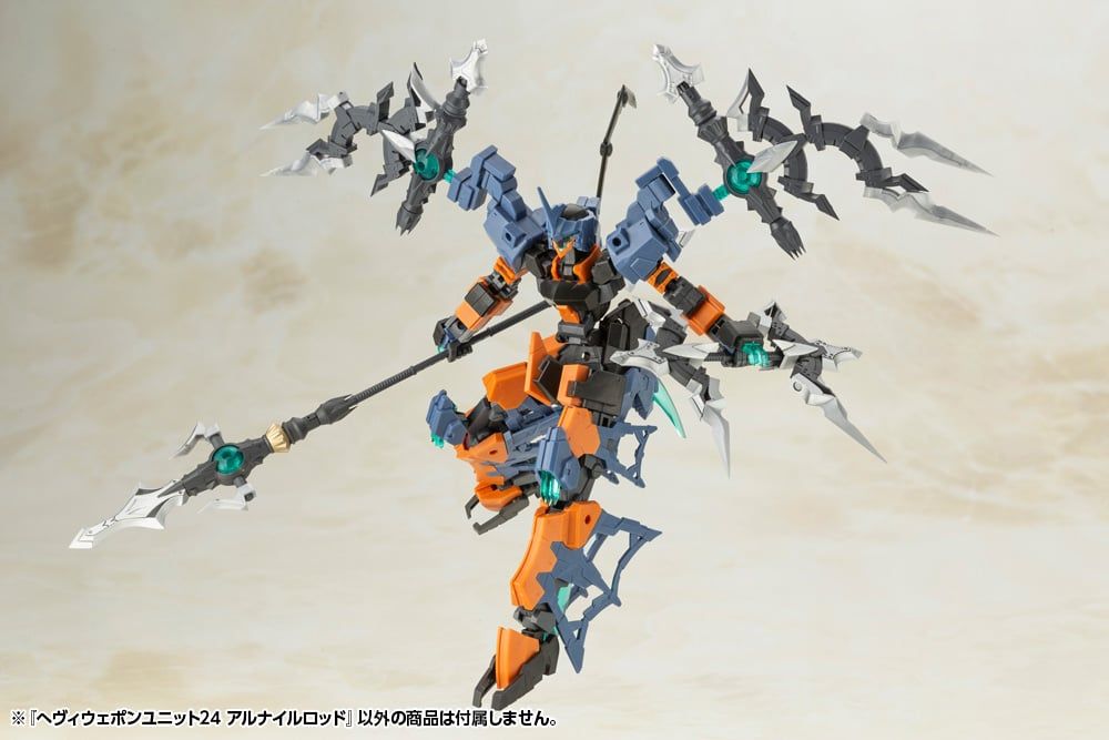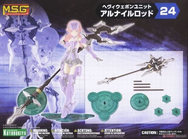 Tương tự Magia Blade trước đây, bộ Heavy Weapon Unit này mang phong cách Sci-Fi + Fantasy, được thiết kế để trưng bày cùng figure nhân vật.Vũ khí chính là pháp trượng Alnair Rod, có thể biến đổi thành giáo, lưỡi hái hoặc nhiều dạng khác. Khi gắn đèn Milight (LED), phần lõi trong suốt sẽ phát sáng. Bộ còn kèm các hiệu ứng ma pháp hình tròn (to, vừa, nhỏ) trong suốt màu xanh lá, có thể gắn lên trượng qua khớp 3mm. Ngoài ra, các vòng tròn có thể kết nối vô hạn, tùy biến thành giáp, cánh lớn, lưỡi kiếm...