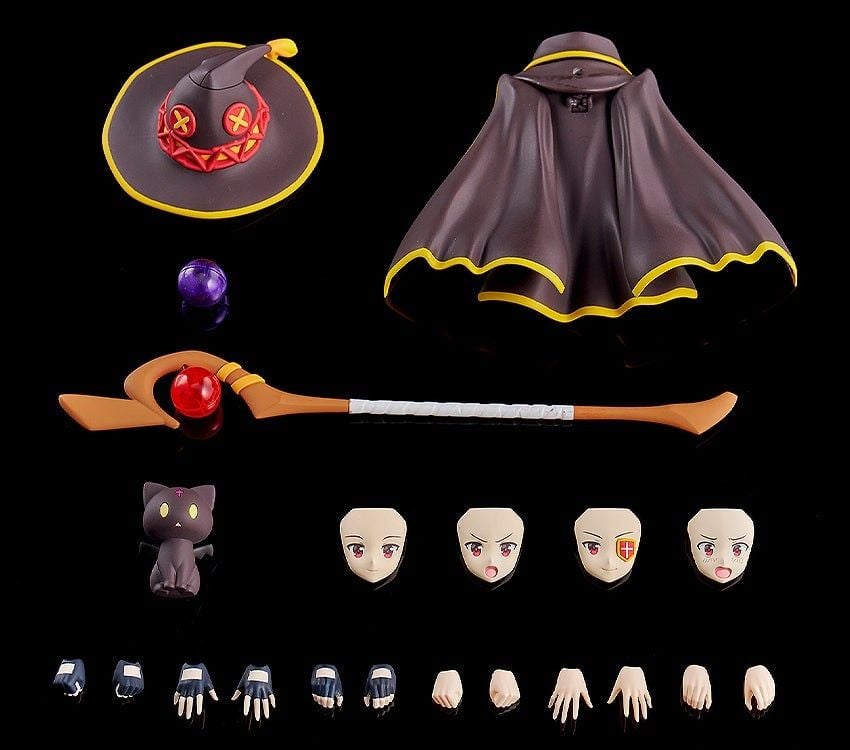 - Phụ kiện phong phú gồm: mũ, áo choàng, 3 loại tay (trang phục thường), 3 loại tay (đồ bơi), trượng của Megumin, Chomusuke và đế trưng bày.
