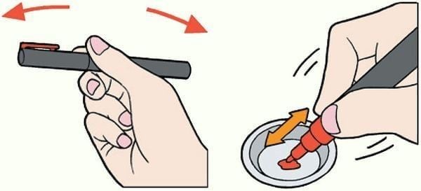 1. Lắc bút để dung môi và màu trộn vào nhau, lưu ý lắc đều tay.