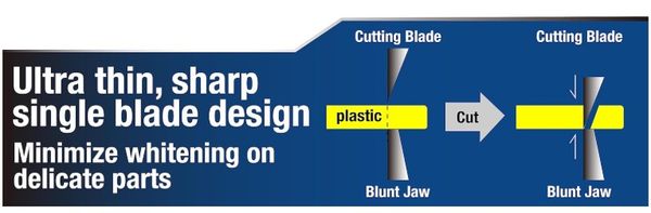 Lưỡi cắt được thiết kế mỏng, lý tưởng để tách các chi tiết tinh xảo ra khỏi khuôn (gate). Lưỡi tù giữ part cố định. Cơ chế của kềm 1 lưỡi hoạt động giống như dao cắt, giúp cho vết cắt được ngọt và chính xác như dao. So sánh với cơ chế hoạt động của kềm 2 lưỡi là cả 2 bên lưỡi đều cắt, dẫn đến tình trạng chi tiết nhựa bị "nghiền" giữa 2 lưỡi, kềm 1 lưỡi cho kết quả tốt hơn rõ rệt.