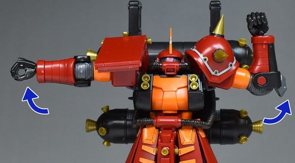 Cũng như các kit HG Zaku khác, kit lần này cũng có cơ chế xoay mắt bằng một chấu nhỏ dưới đầu.