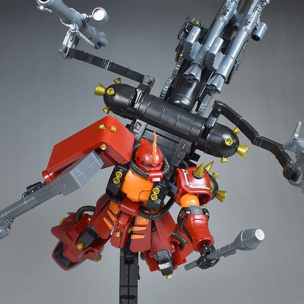 Sỡ hữu một lượng khí tài cực kì lớn và đồ sộ, HG Psycho Zaku trở nên rất to và hầm hố dù phần body chính không quá to